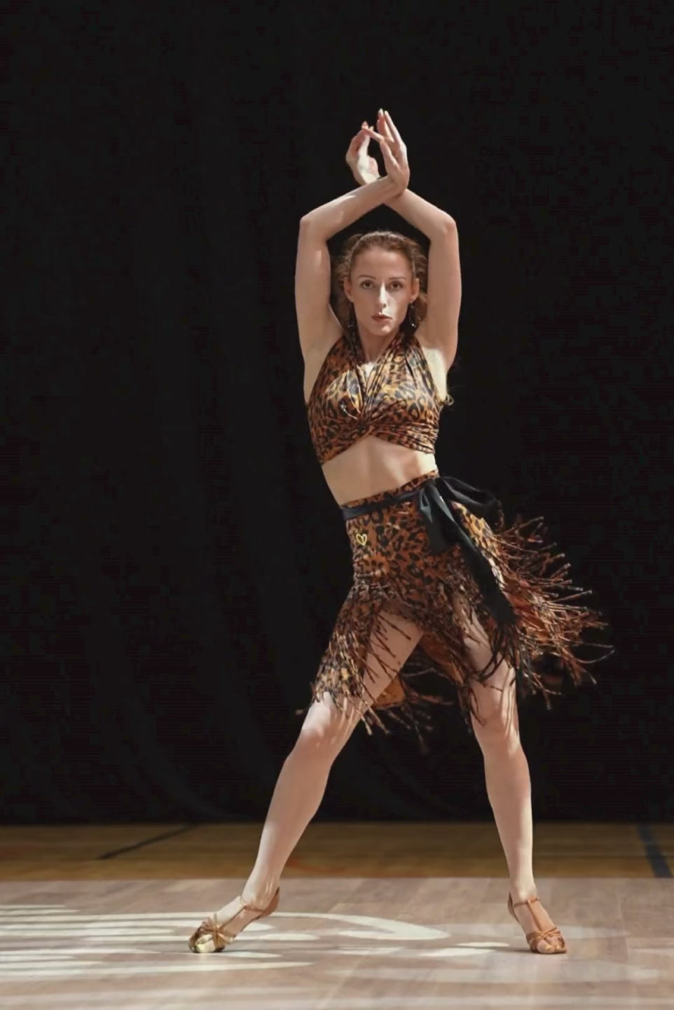 Fuld bevægelse, fuld energi! Denne latinnederdel er designet til at følge dine mindste bevægelser og samtidig skabe maksimalt visuel effekt på dansegulvet.